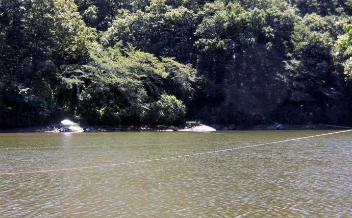 また底釣りも面白い。宙釣りほど数は出ないが、型も宙と変わらず引きを楽しめるだろう。底釣りも極端に長い竿は必要なく、状況によっては深過ぎるとアタリが出にくい場合もある。また上流部は頭上に突き出た木の枝などの影響で、あまり長い竿が振れない場所も多い。振れる場所なら長い竿でやるのも好み次第だが、8~16尺竿程度まで用意していけば十分だろう。