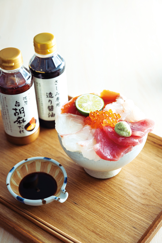 大渦5色丼1,694円。鯛やマグロ、サーモン、イクラ、エビで彩り豊か。