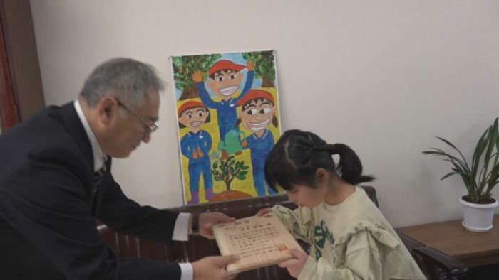 「にいがた緑の百年物語緑化推進委員会」は、植樹や森林保護など自然環境の大切さを知ってもらおうと、毎年県内の小中学生や高校生を対象にポスターと標語のコンクールを開いています。このうち、「ポスター部門」には県内から32点が寄せられ、審査の結果、友達と木を植え、水やりをしている様子を描いた松田さんの作品が最高賞の「優秀賞」に選ばれました。