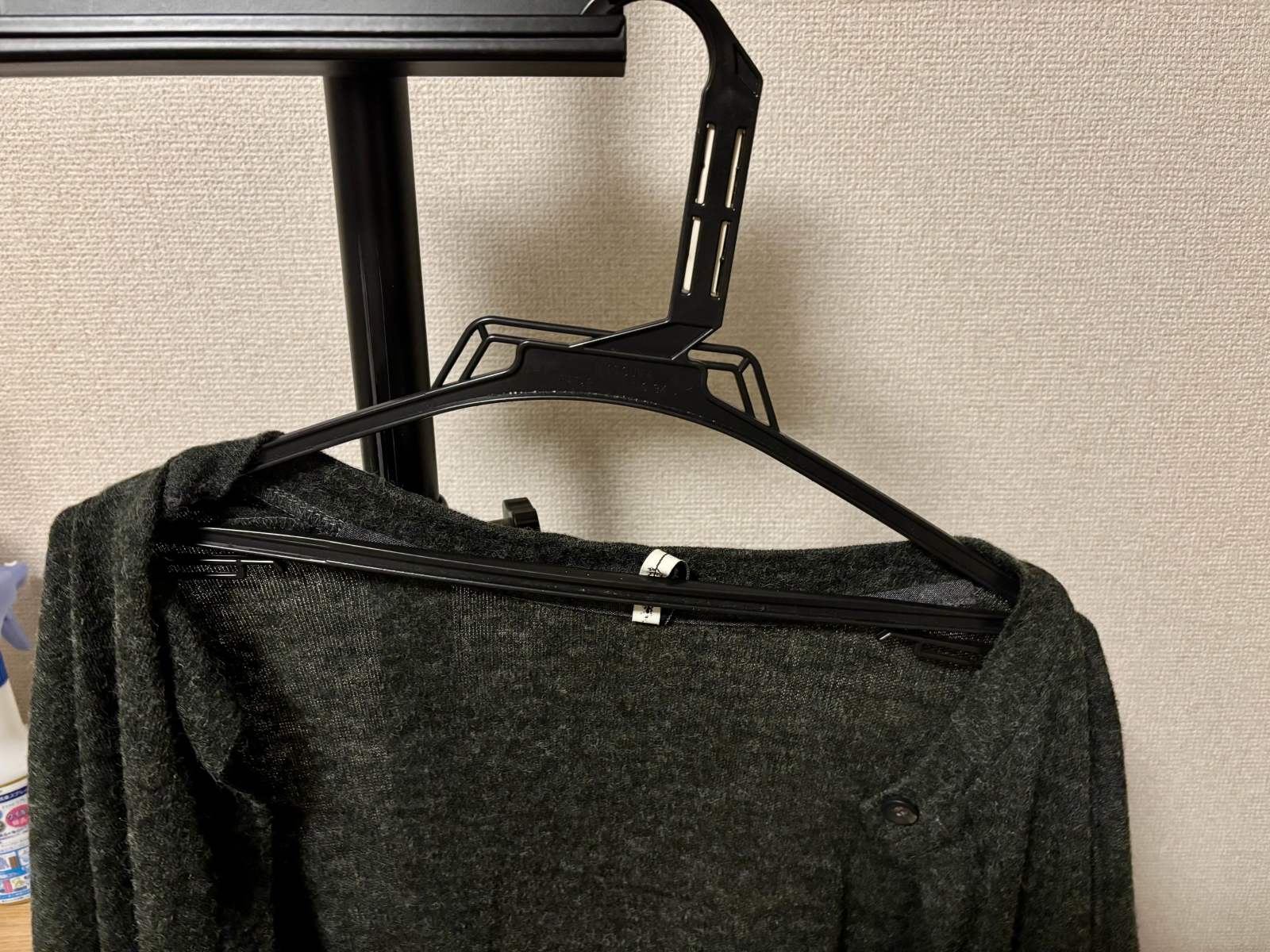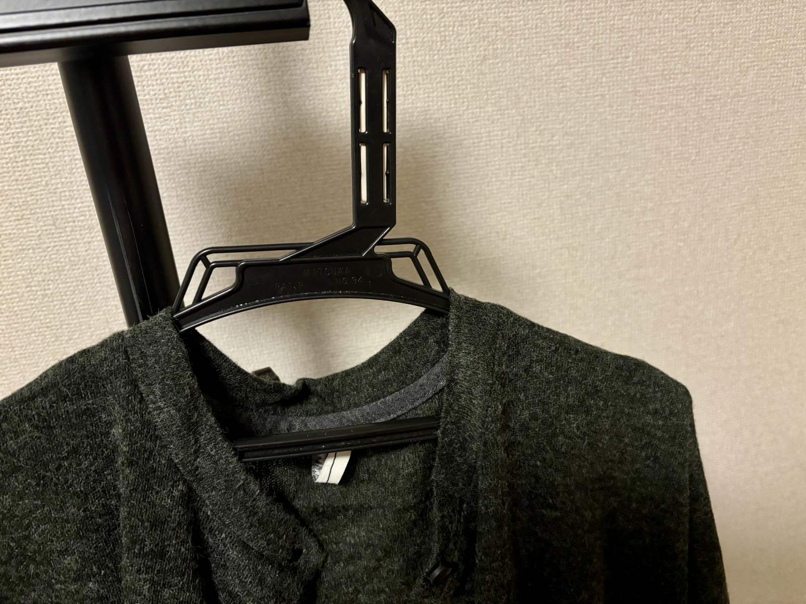このひと手間で、ツルツル素材の服もしっかり固定され、ハンガーから滑り落ちる心配がなくなります。