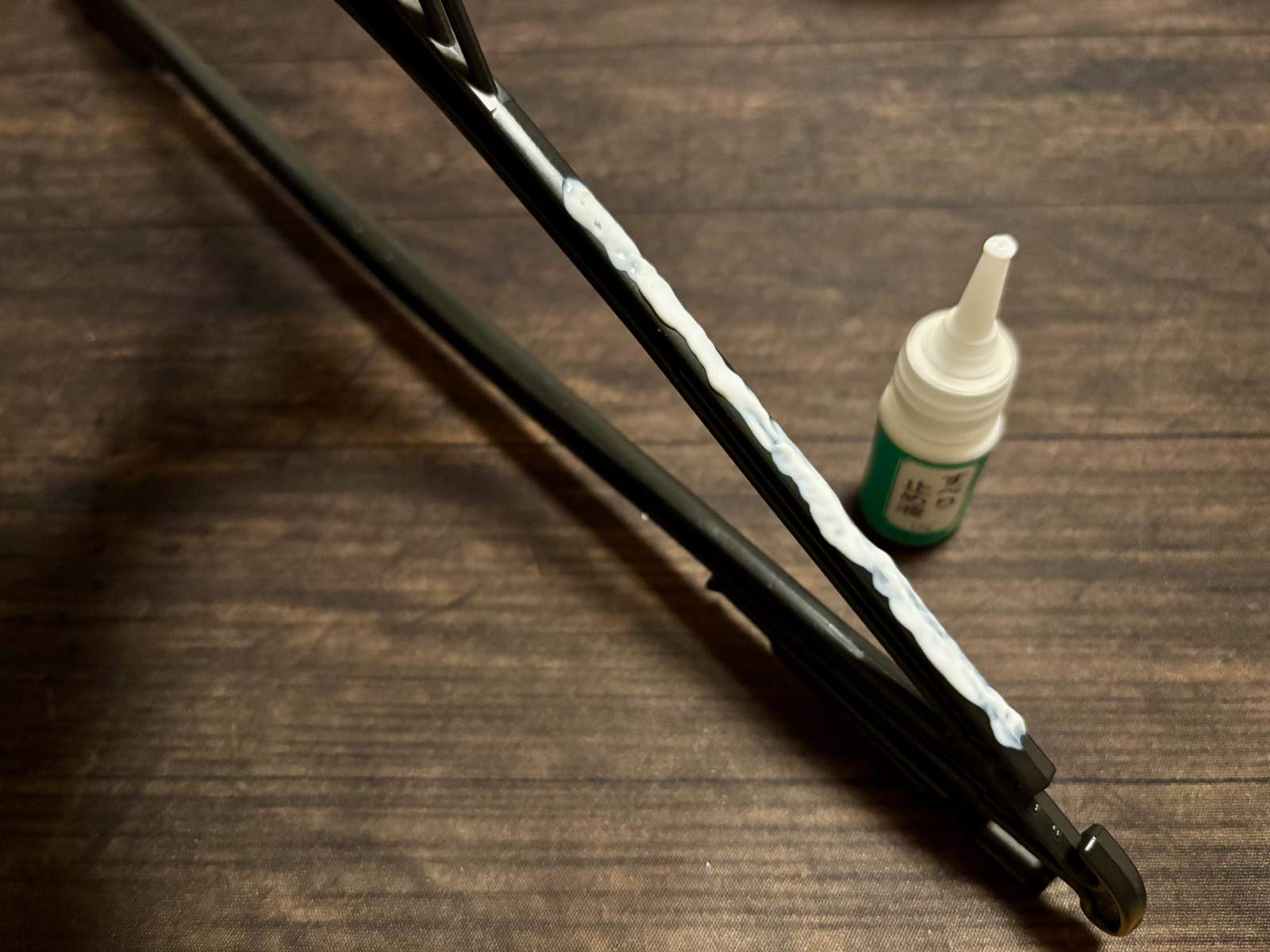 柄の先にすべり止め液を薄く塗っておくと、掛けた時にしっかり摩擦力が働いて、落ちにくくなります。