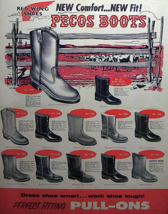 かつてはアメリカ西部のテキサスにも拠点を持ち、1930年代にはウエスタンブーツの製造も担っていたレッドウィング社が1959年に開発。左右両側の縫い目(サイドシーム)や高めのヒール、やや長めの筒を持つプルオンタイプのウエスタンブーツをベースにワークブーツとして改良したという背景を持ち、モデル名はアメリカ中西部に存在する街の名前が由来だ。