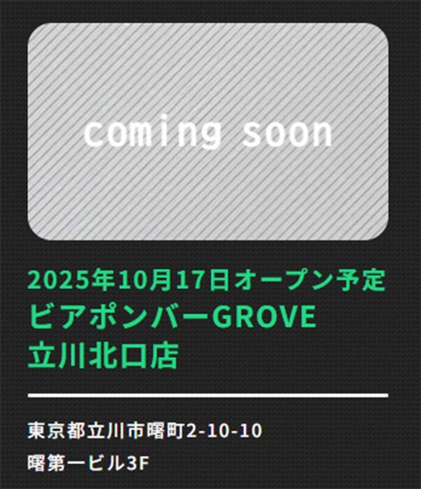 【開店】立川駅北口にも!?曙第一ビルの3Fに『ビアポンバーGROVE 立川北口店』が10/17(金)オープン