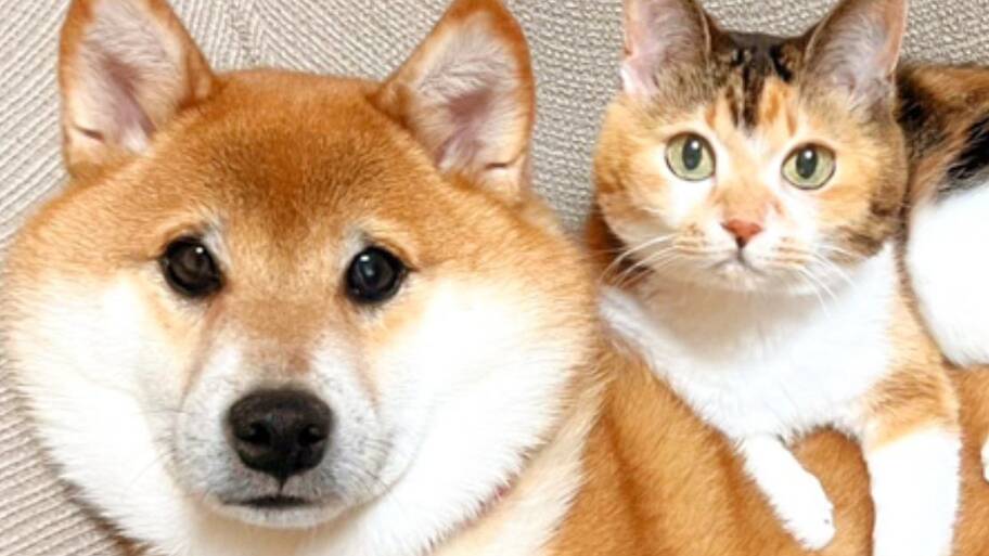 抱っこするのも難しいほどのビッグサイズに成長したそう!飼い主さんと並んで見ると、タケちゃんがかなり大きく成長したことがよくわかります。