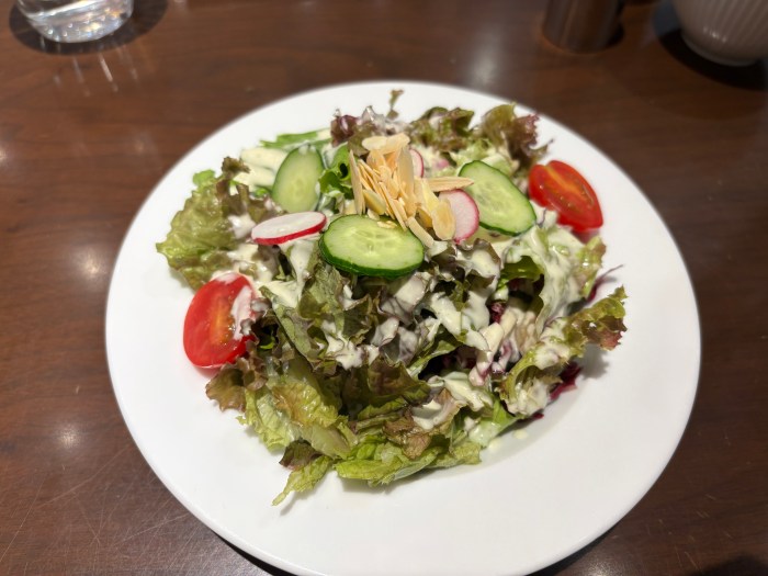 普通のランチセットのサラダの2倍くらいあって、食べ応え抜群。野菜も新鮮で美味しいし、全体にしっかりドレッシングが絡んでいるし、水っぽさもない。