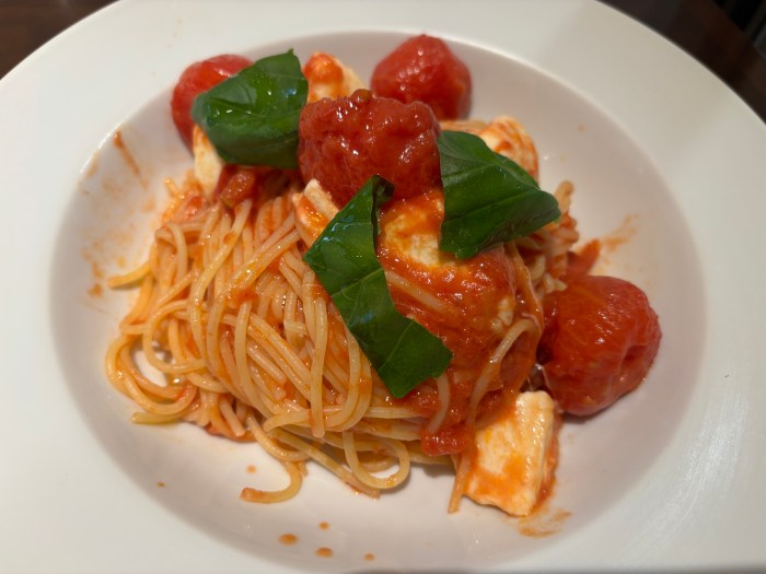 その後に届いたトマトとモッツァレラチーズのパスタも……。