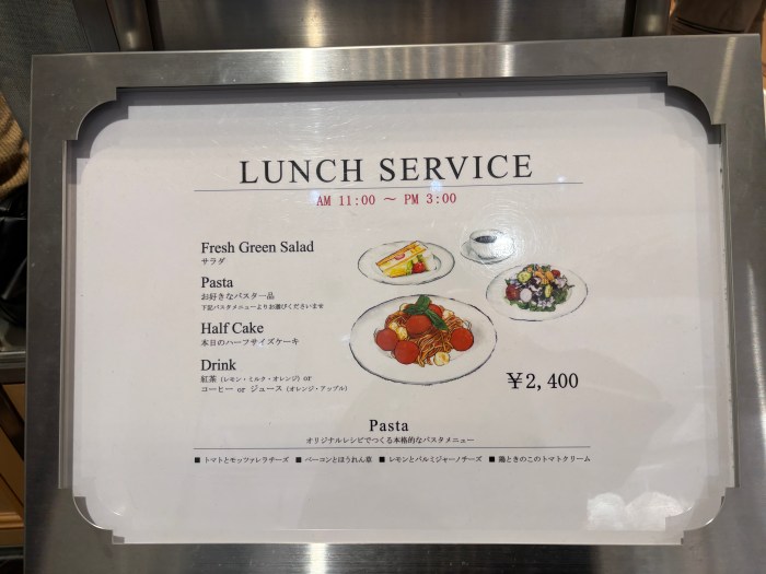 ランチセットのメインは店舗によって、パスタ or サンドイッチで異なるよう。私が訪れた上野店では