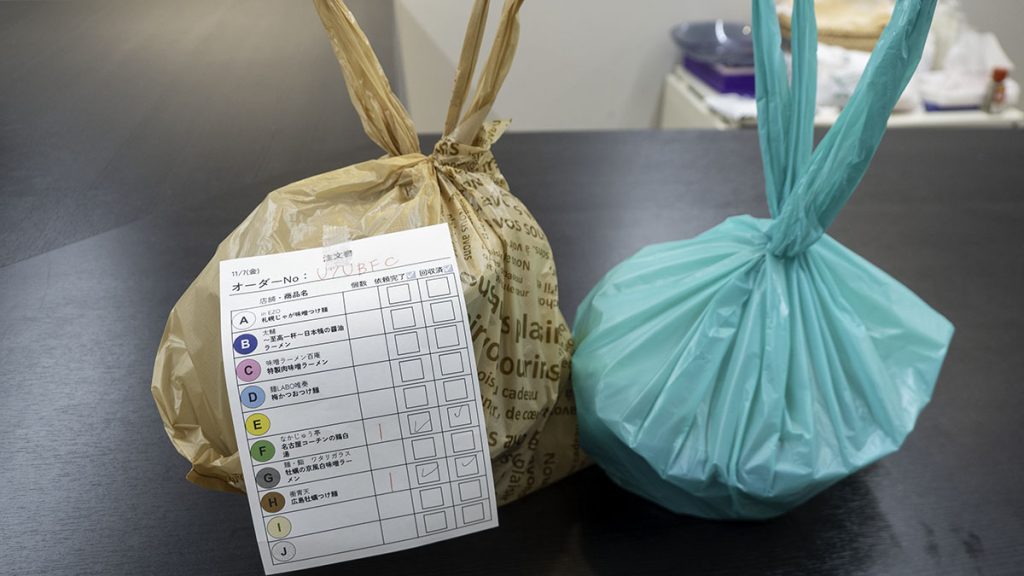 商品が入った袋は、取り違えがないように色分けされている。