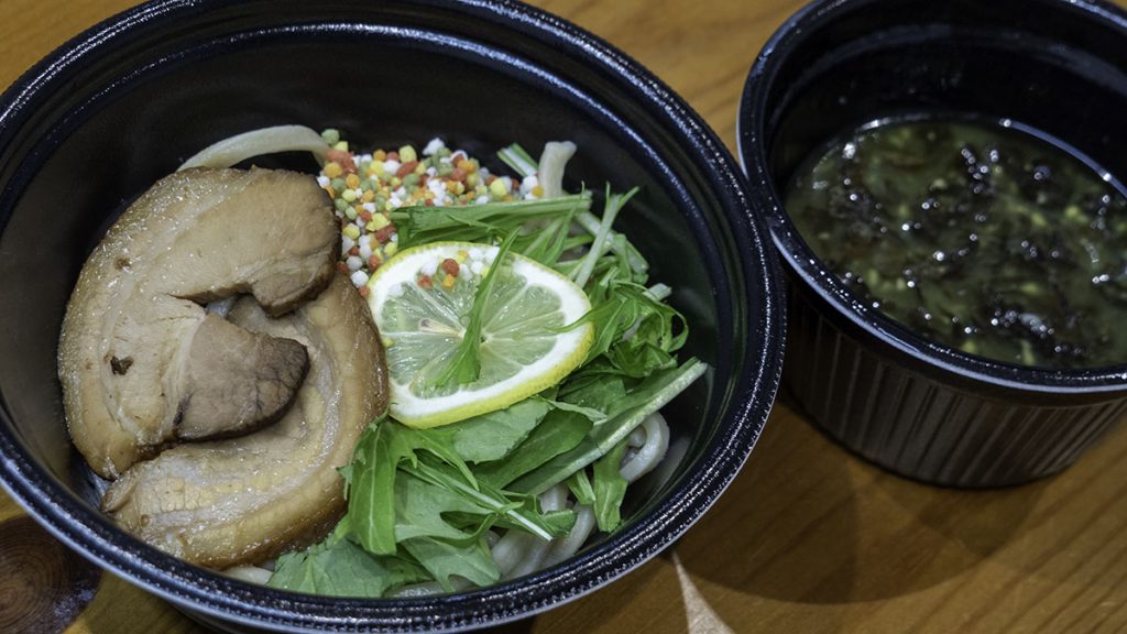 「名古屋コーチンの鶏白湯」はつけ麺ではなくラーメンだが、汁と麺が分かれたセパレート式で届けられるので、配達中に麺が伸びてしまうことはない。
