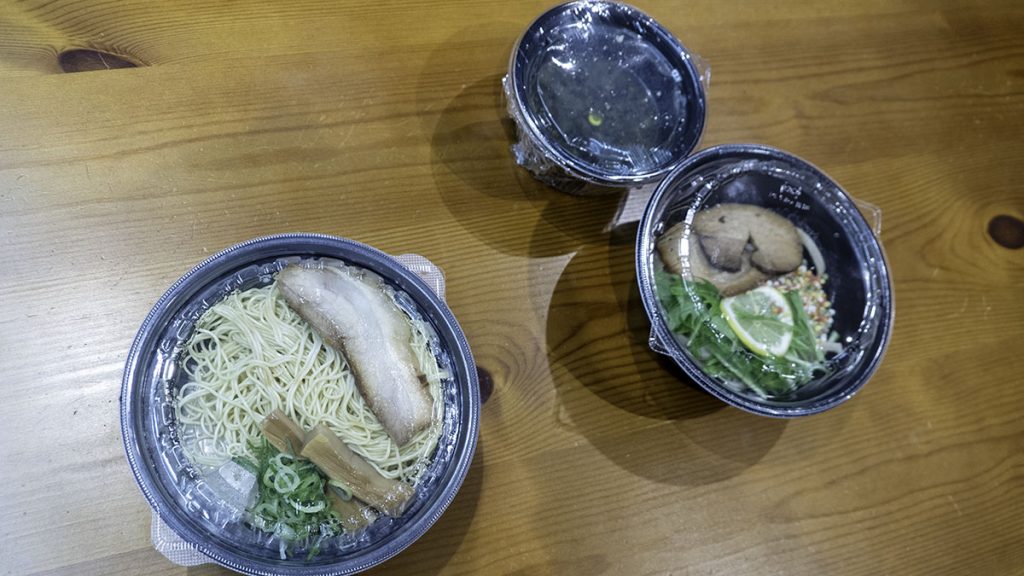 今回注文したのは、なかじゅう亭の「名古屋コーチンの鶏白湯」(左)と衝青天の「広島牡蠣つけ麺」の2品。