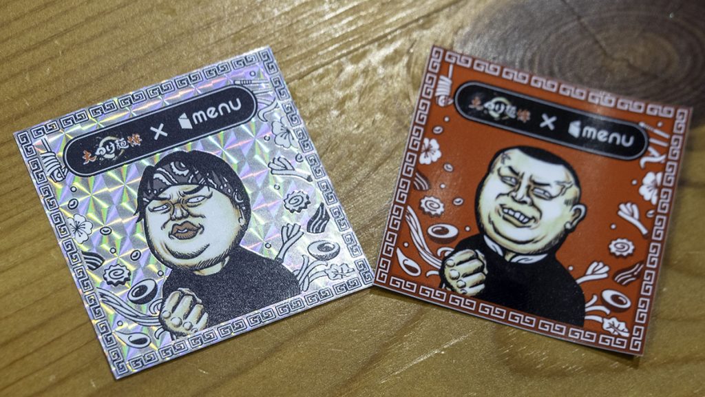 デリバリー注文限定ステッカー(後述)。今回は2品注文したので2枚ゲット。うち1枚はホログラム仕様だった。