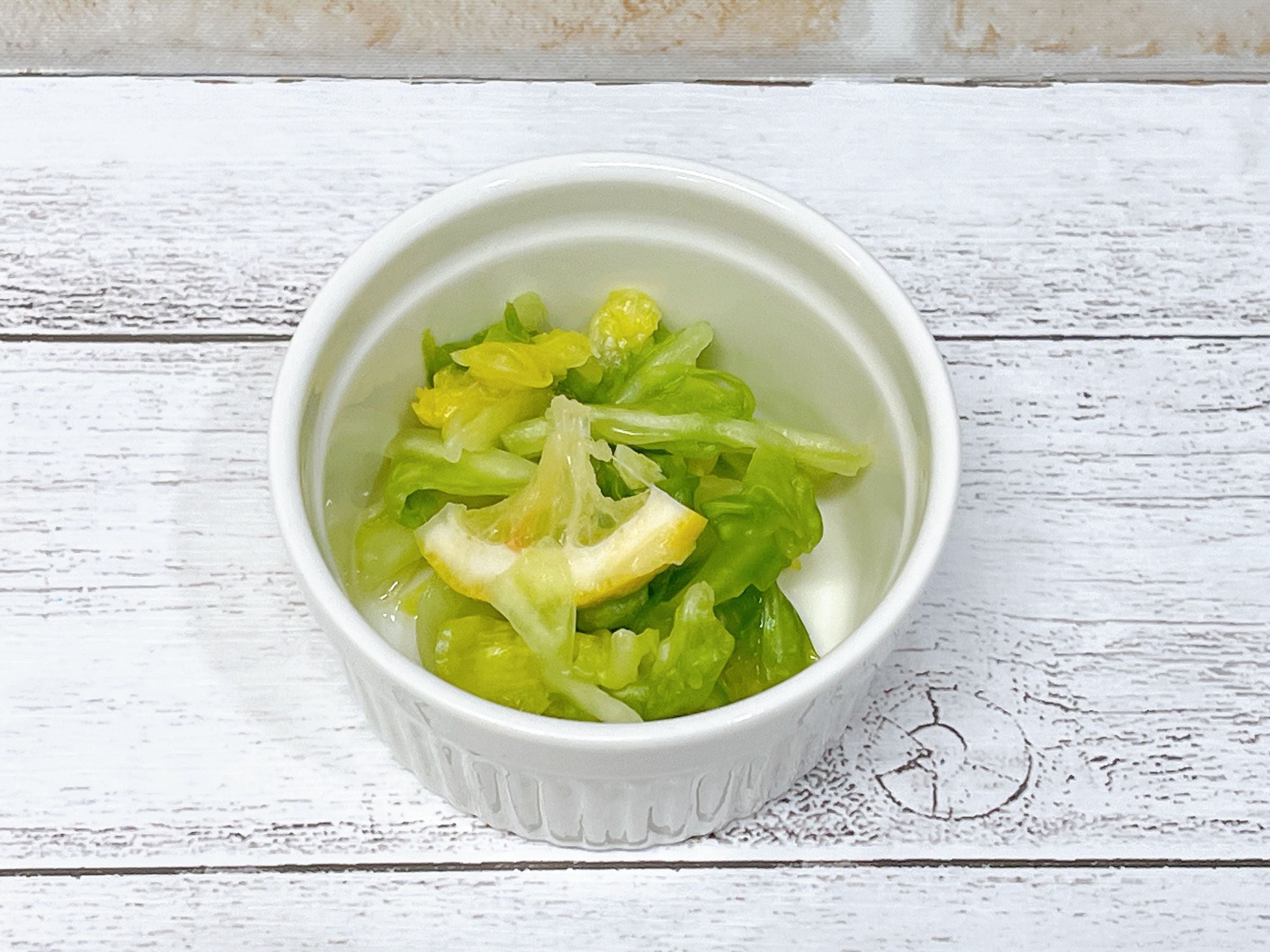 2)水気を切ったキャベツにレモンを混ぜてポリ袋に入れ、冷蔵庫に30分ほど置いたら、キャベツのレモン漬けの出来上がりです!