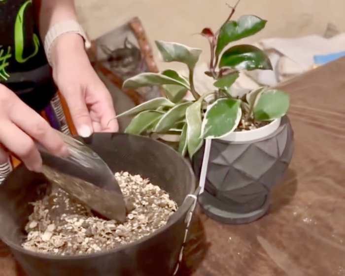 次は植物に合うオリジナルの土を配合。これも先生が用意してくれた配合表の通りに混ぜていきます。