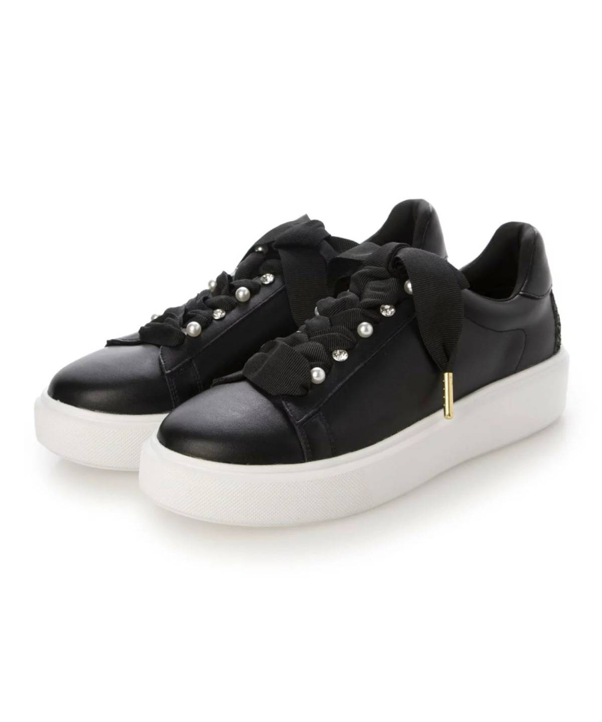 パールのストーンがアクセントになったデザインのスニーカーは、レディライクな雰囲気が◎