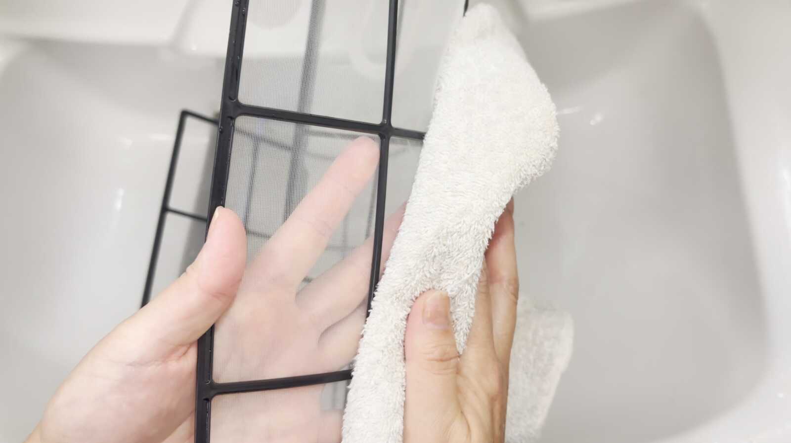 シャワーをフィルター裏側から当てると、網目に詰まったホコリがスムーズに押し出されます。