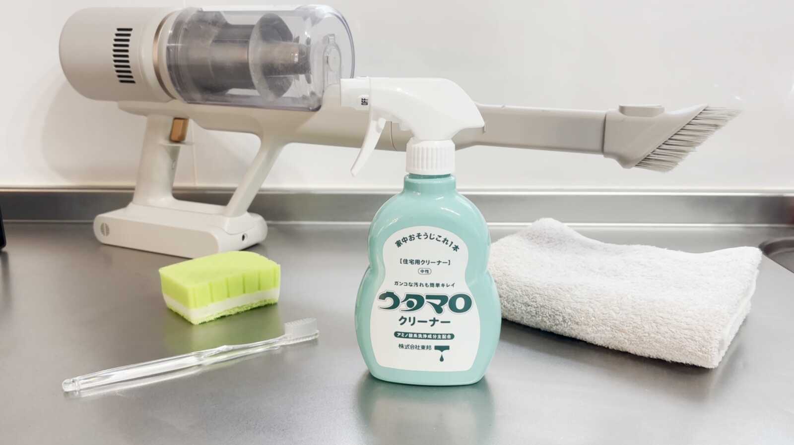 その後、ウタマロクリーナーで軽くこすれば、残った汚れも落ちていきます。水でさっとすすいで洗剤を落としておきましょう。