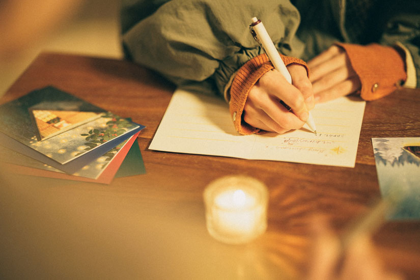 期間中、毎日19時30分から21時30分に行われる『Message of wishes』。軽井沢高原教会オリジナルのレターセットを使って、「牧師館」で日頃伝えきれない想いを手紙に綴り「星降る森の特別な場所」で贈り合います。