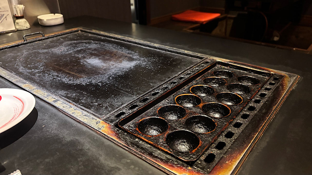 テーブル備え付けの鉄板にはたこ焼き用のプレートがあるのも「吉兆」の珍しいところ。