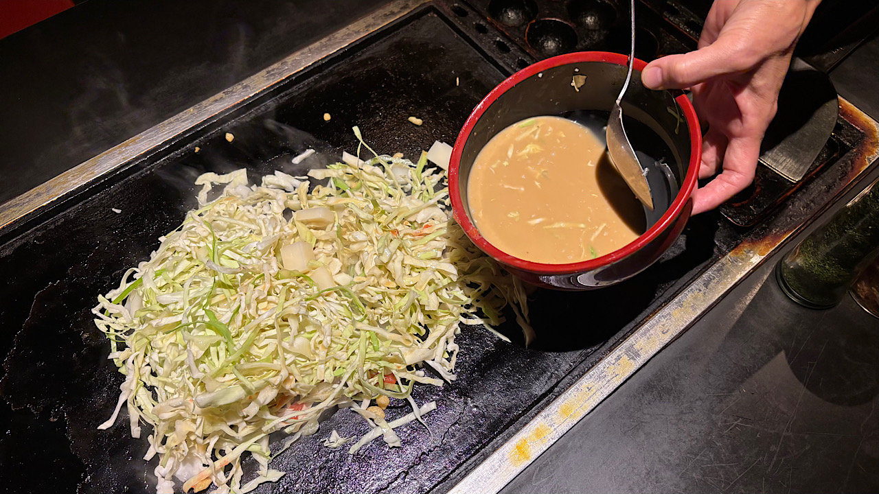鶏ガラと豚骨でとったスープが決め手のもんじゃ焼き