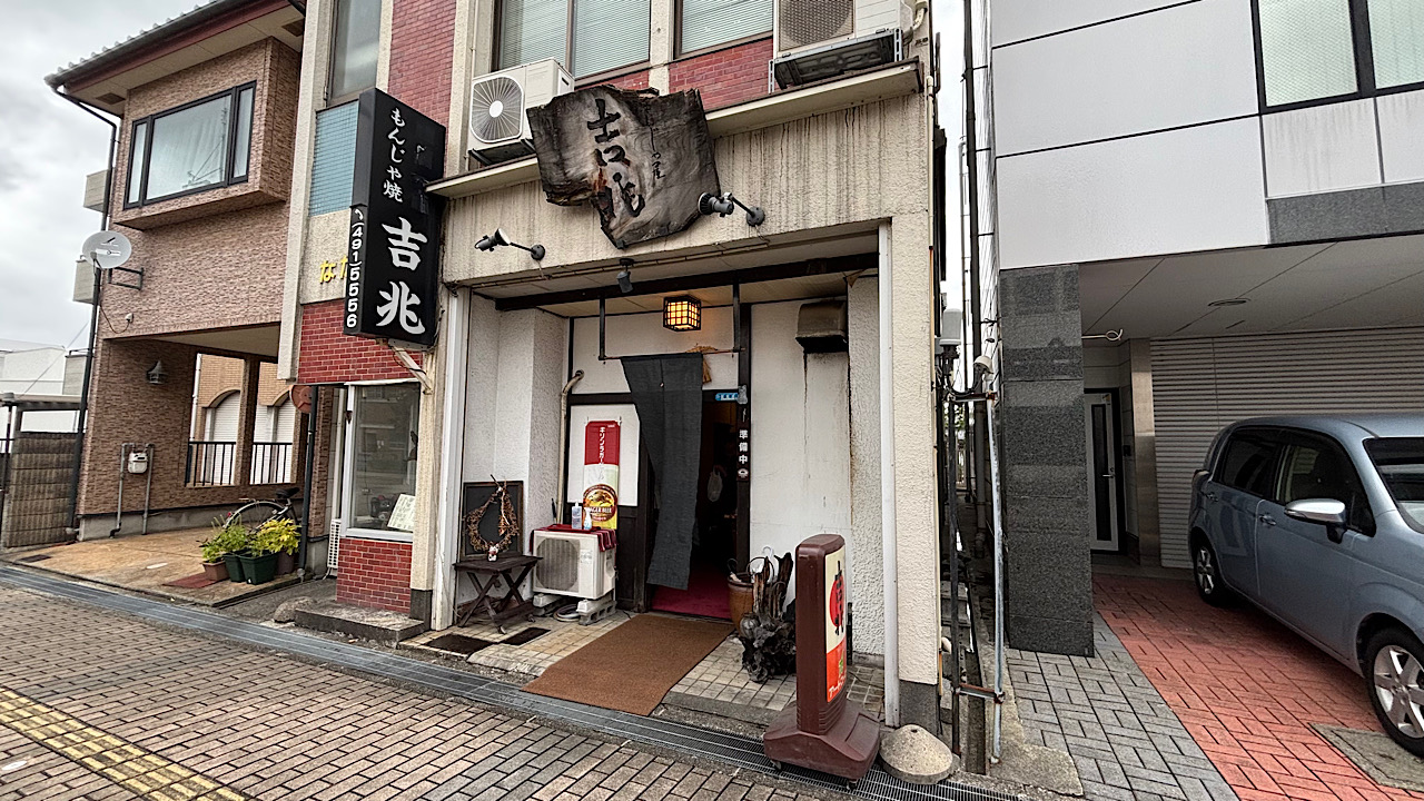 富山市中心部の住宅街、富山市上本町に店を構える「もんじゃ屋 吉兆」。