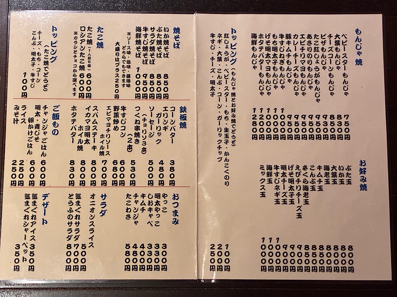 迷う時間も楽しいですが、もんじゃ焼は初めてという人や、なかなか決められないという人には、一番人気の「もち明太子」がオススメ。