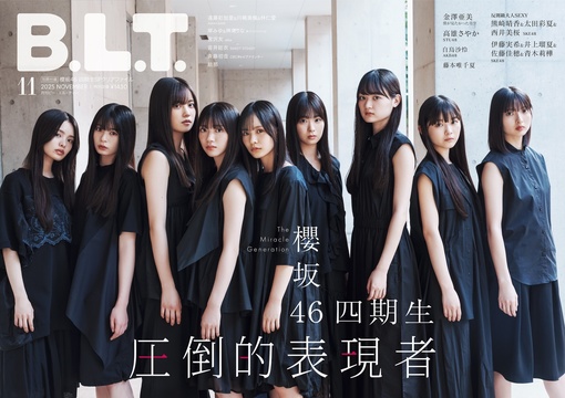 櫻坂46四期生が、9月27日発売の「B.L.T.11月号」の表紙と巻頭に登場する。浅井恋乃未、稲熊ひな、勝又春、佐藤愛桜、中川智尋、松本和子、目黒陽色、山川宇衣、山田桃実の9名が、オールブラックの衣装をまとった力強いカットが表紙を飾る。5周年を迎えた櫻坂46に新たに加入した彼女たちの“現在地”を知るための大特集が組まれている。