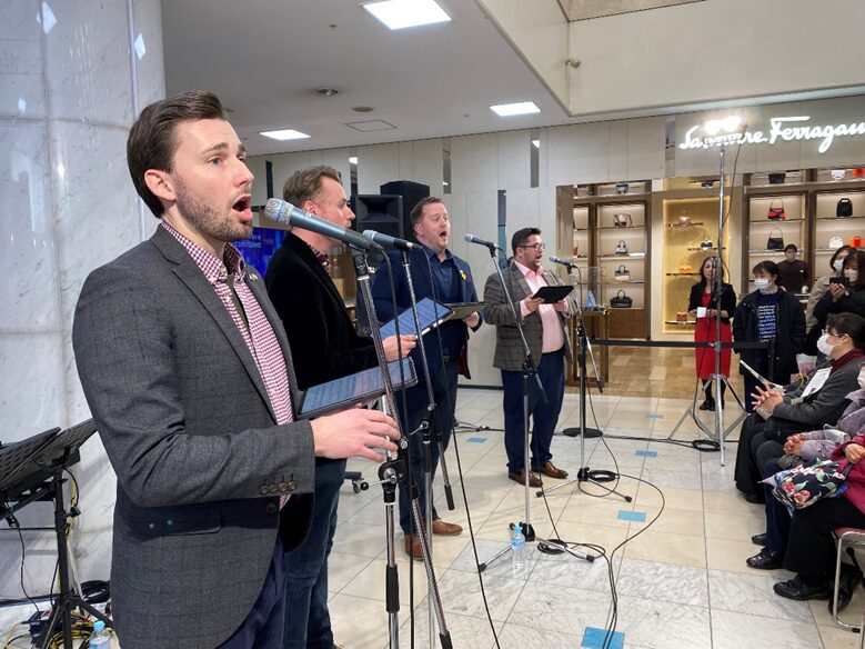 クリスマスマーケットを舞台に、心を震わせるゴスペルライブをお届け。冬の夜にぴったりです。