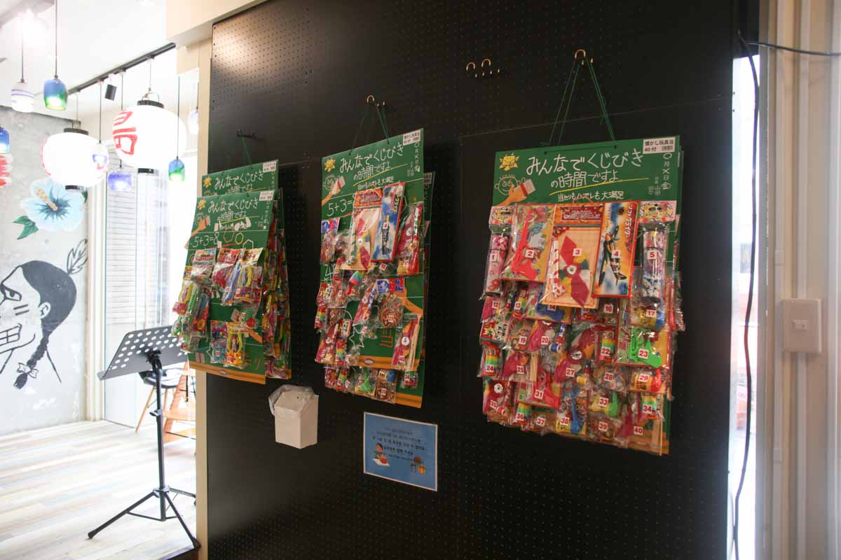 壁際に、駄菓子屋さんにあるようなくじ引きがありました! 子どもはもちろん、外国人の観光客にも喜ばれそうですね。