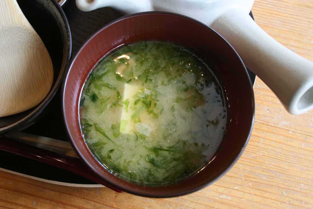 ちなみに、一緒に提供されるアーサの味噌汁も絶品です! なかに入っている島豆腐もおいしく、やさしい味わいで、ほっとひと息つけます。
