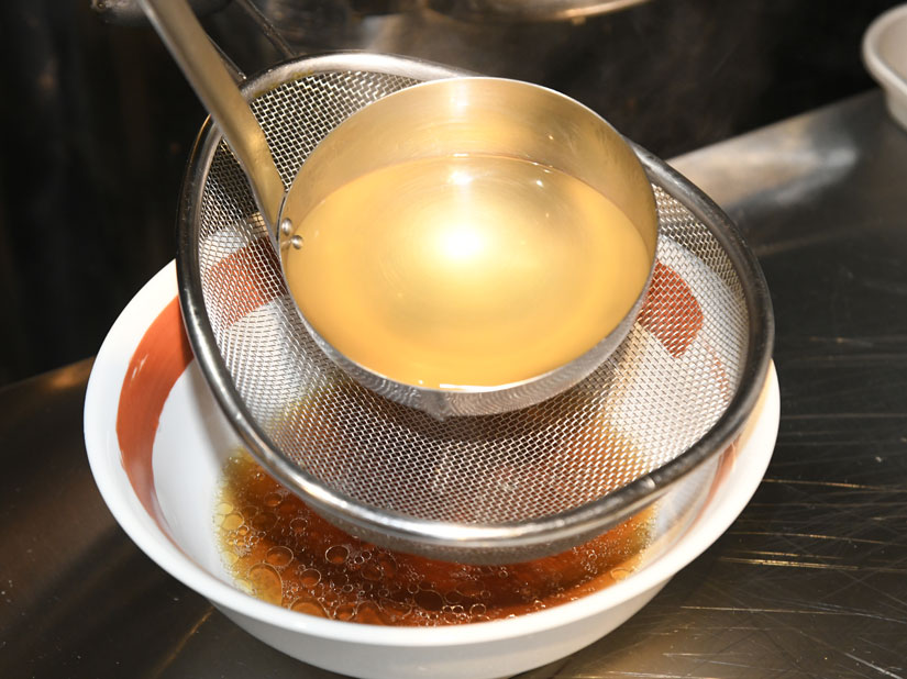 鶏ガラベースのスープは黄金色。仕込み時から営業中も常に火入れを行い、濁らさないように温度を管理。醤油と合わせてもクリアで醤油ラーメンの王道の輝きが感じられます。