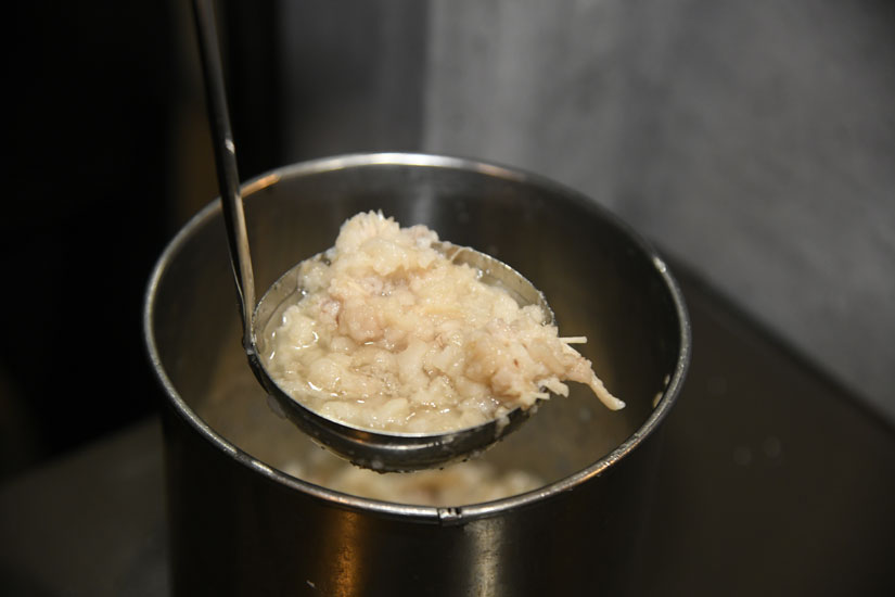 「背脂まぜそば」をはじめ、「背脂淡麗醤油ラーメン」、「背脂特濃醤油ラーメン」(各1,080円)で使われる良質な背脂は粒を大きく使うのがポイント。見た目ほどしつこくなくマイルドで、良い香りと甘みが感じられます。