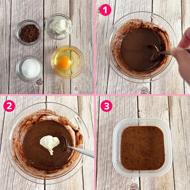卵・砂糖・ココアパウダー・水切りヨーグルトだけで、レンジで手軽に作れるのがうれしいポイントです。