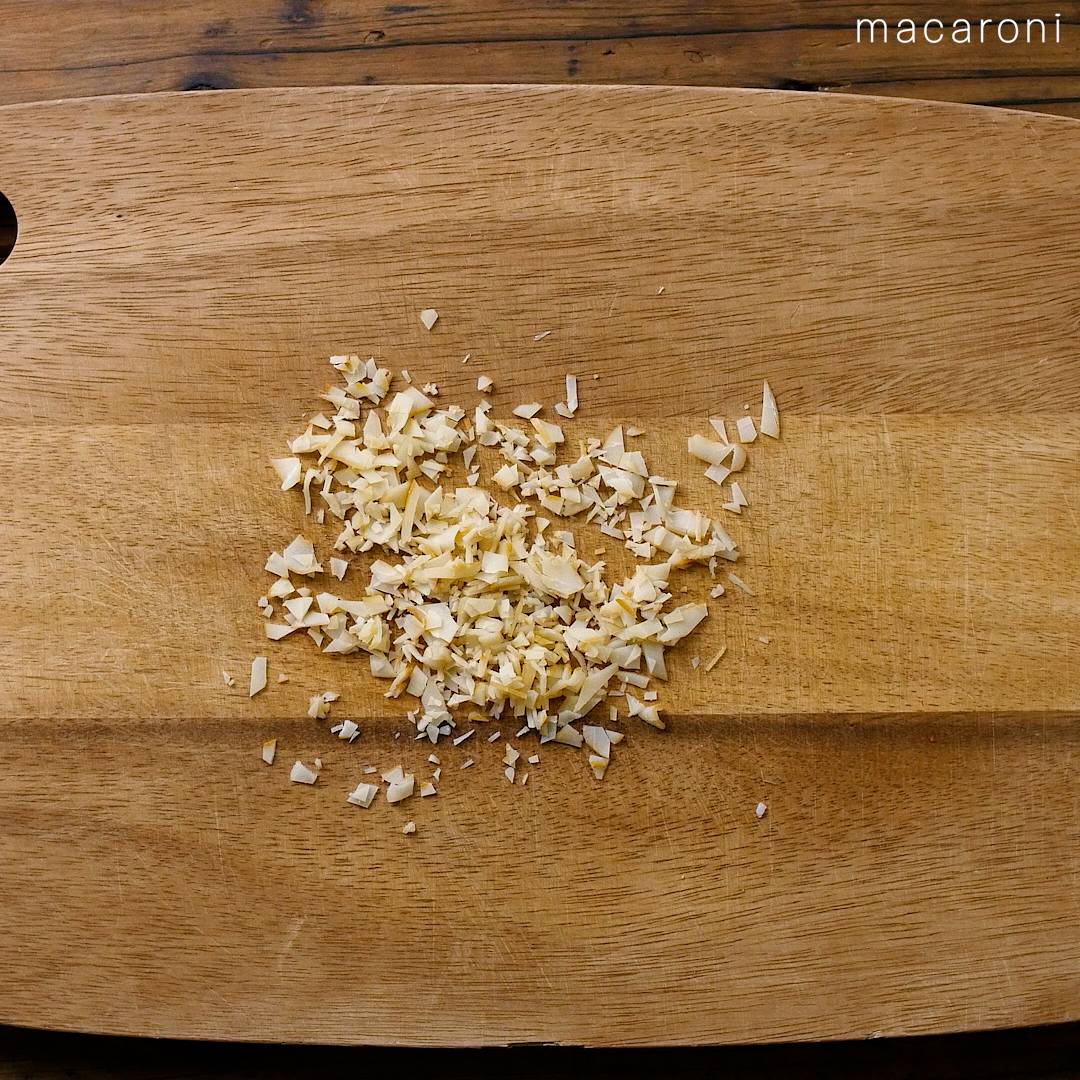 2: いかのくんせいを粗みじん切りにします。