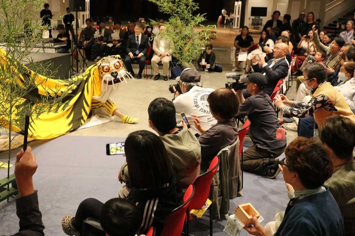 「三陸未来芸能祭」と銘打ったプログラムには、虎舞と鹿踊(ししおどり)4団体が出演した。三陸地方には両芸能の伝承団体が数多く存在するが、土地によって頭(かしら)の形状や踊りが大きく異なる。虎舞は江戸時代の盛岡(南部)藩領と仙台(伊達)藩領で違いが見られる。会場では釜石市の鵜住居虎舞、大船渡市の門中組虎舞が演舞。鵜住居虎舞は俗に「雌虎」と称される優雅な舞と数多くの手踊りが伝承されているのが特徴。この日は虎頭の踊りのほか、手踊りの「豊年舞」「傘甚句」が披露された。一方、門中組虎舞は地元神社に伝わる獅子頭信仰に由来し、アクロバット的な踊りが特徴。両団体の演舞の後、釜石の虎舞の演目「跳ね虎」の体験会も行われた。