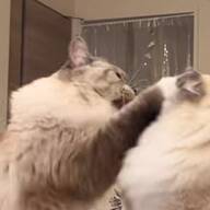 さらに飼い主さんも驚くことに、クロちゃんが背中の毛を逆立ててジーニーくんに威嚇をするようになったそうで、ジーニーくんに向かってダッシュしフェイントをかけるような「やんのかステップ」を見せるまでになってしまったそう。