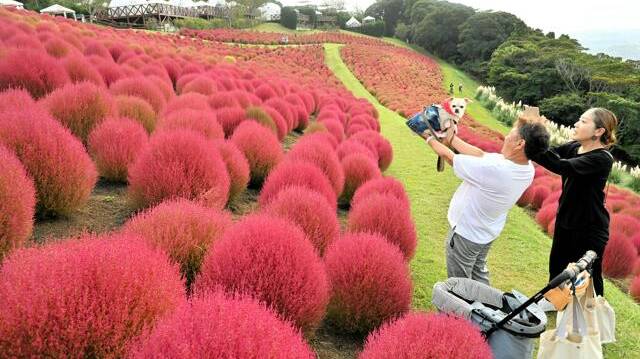 「マザー牧場」のコキアが紅葉シーズン突入♪まさに見頃で今めっちゃキレイだよ!【お出かけスポット】