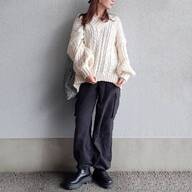 ガールフイナムという"ガール"が冠についたメディアだけど、メンズファッションには常にアンテナを張っていたい。展示会を回っている中で〈KHOKI(コッキ)〉はとても印象的でした。2019年にデザインチームとして始動した〈KHOKI 〉は、伝統技法を用いて、過去、現在、西洋と東洋、現実と空想が混在する独自の世界観を作り出しています。こちらはジャガード編みで表現された切り絵柄のニットマフラー。実際に切り絵を作り組み合わせて制作しているそう。(こちらのカラーは早々に売り切れてしまったそうで……色違いは販売中です)コレクションもとても好みだったのですが、より興味が湧いたのは〈KHOKI〉のウェブサイト「EYE」を見たから。コンセプトや写真の使い方も面白くて、見ているだけで楽しいし、チームのメンバーの私物も買えてしまうなんて(sold outばかりだけど!)。独自のスタイルを貫く姿勢に、惹きつけられてしまうんです。