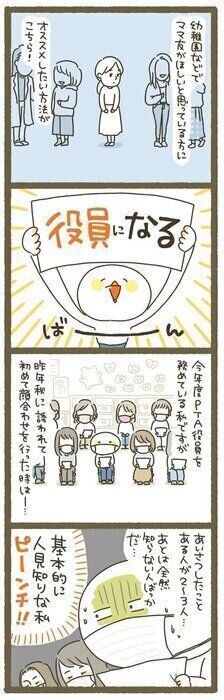 元々知り合いゼロで入園し、コロナ禍で休園や登園自粛の期間もあり、参観日なども中止され、おまけに地蔵な次女だったため私の交友関係も狭く、20人弱の新年度役員メンバーの中に仲の良いママ友はいませんでした。