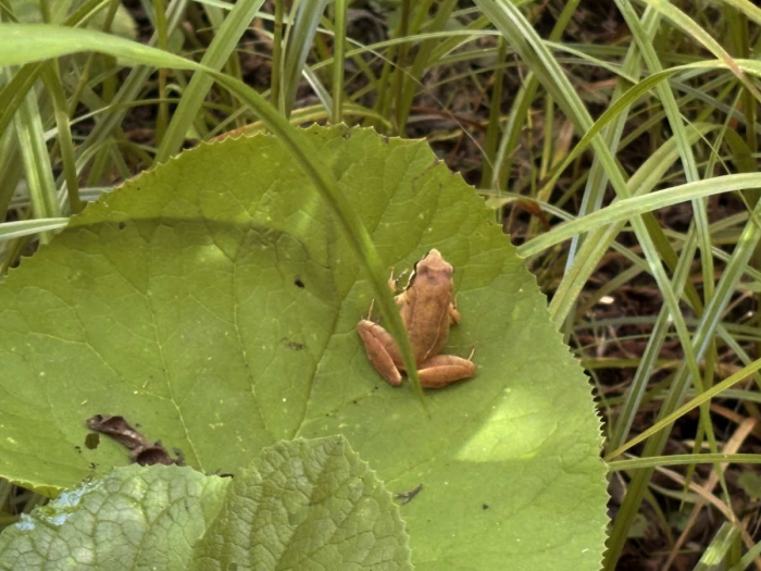 ちょうど、その開花を待ち続けるように寄り添っているカエルの姿も印象的で、そこだけ神秘的な空間に感じられました。