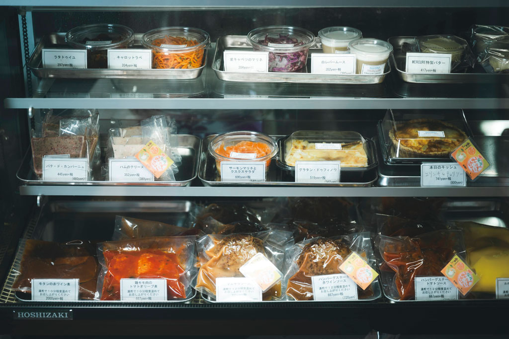 フレンチデリにはイートインでは登場しないメニューがそろう。日替わりキッシュ、前菜、サラダ、メインなど家で組み合わせればコースに。
