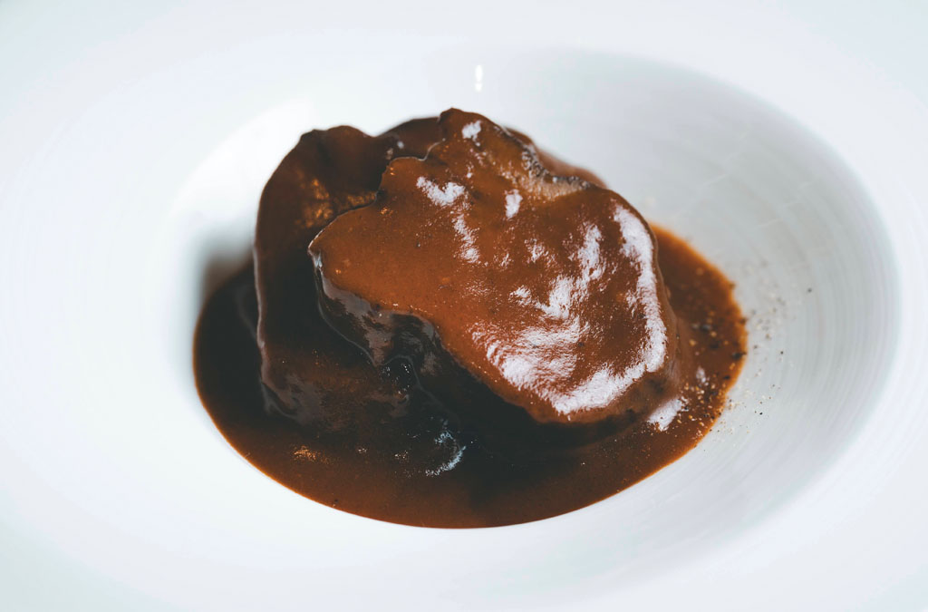牛タンの赤ワイン煮 2,160円。やわらかく長時間煮込まれた牛タン。ほどよい酸味と奥深い甘さが味わえる。10分ほど湯煎で温めてお皿に盛れば店の味。