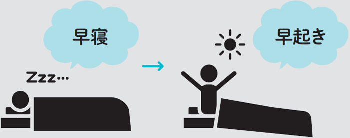 「早寝早起は養生の第一の法なり。夜は早寝して、夜ふかしをせず。夜ふかしすれば、心神を疲れ、血気を耗す。夜は静かに心身を安くし、心を動かさざるべし。」