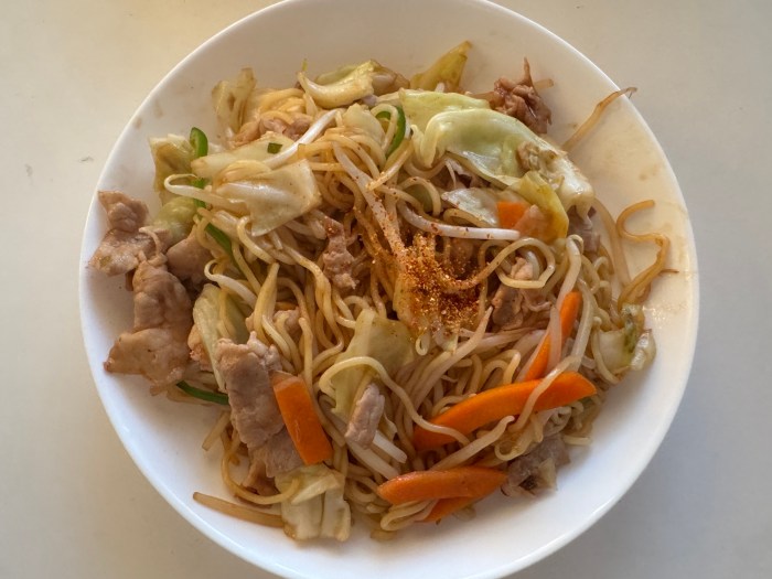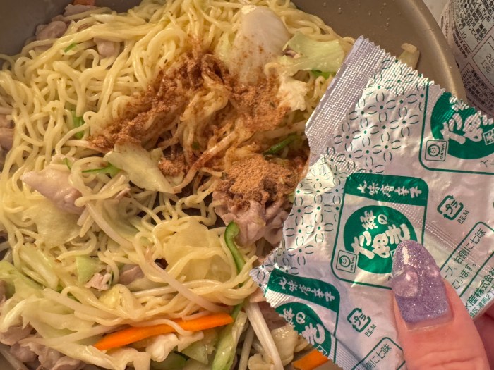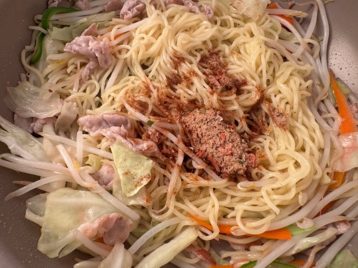 残されたのは粉末ソースを失った麺と、麺を失った粉末ソース。となれば、道はただひとつ。