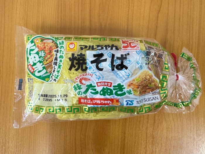 庶民の味方『マルちゃん焼そば』から2025年11月1日、期間限定で『緑のたぬき味』が発売された。月に最低でも5回は『緑のたぬき』を食べる緑のたぬきツウとして、コレは確実に押さえておく必要がある。価格はヨーカドーで税込246円(3食入り)。