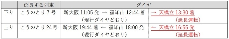 今回の延長運転では、福知山駅止まりとなっていた特急「こうのとり」の一部列車を天橋立駅まで直通運行します。これにより、大阪方面から日本三景の一つである天橋立へのアクセスが大幅に向上します。
