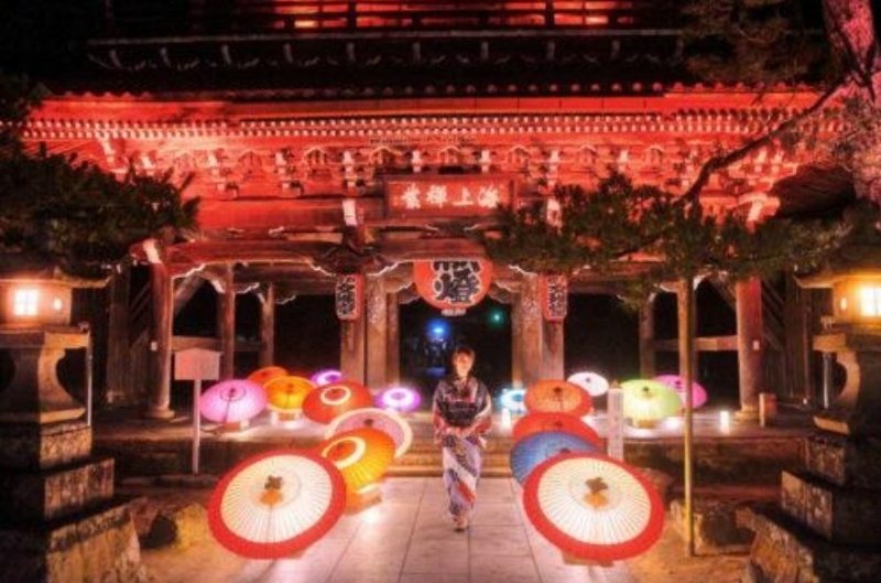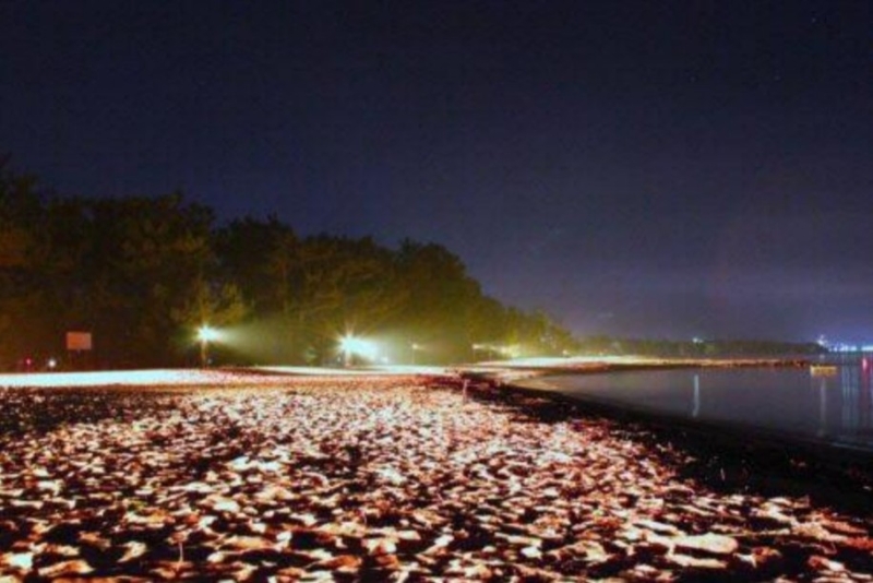 天橋立の砂浜を幻想的な光でライトアップ。時とともに色彩が変化する神秘的な光の空間が楽しめます。