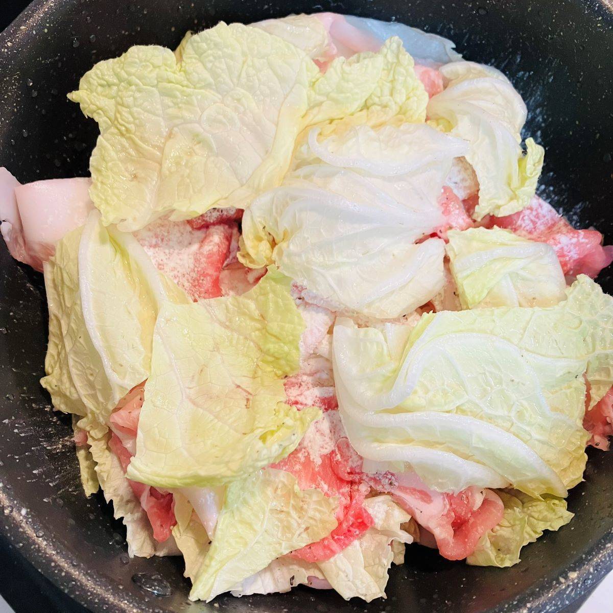 「白菜と豚肉の蒸し煮」、お肉も野菜もたくさん食べられて大満足です♡