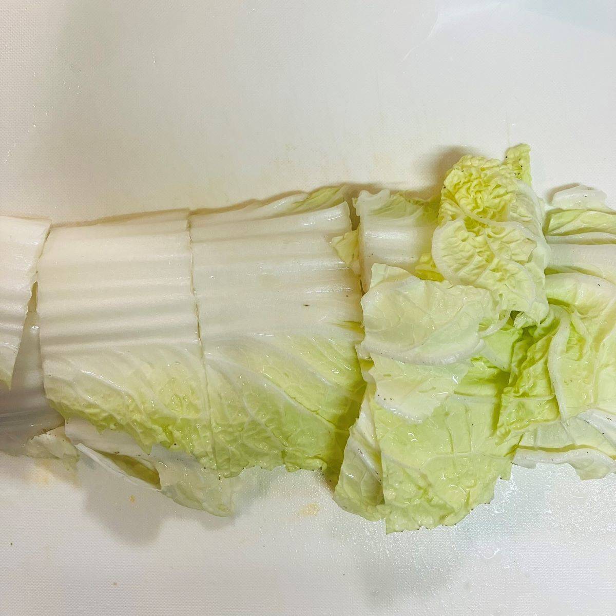 白菜は、5cm幅に切りましょう。