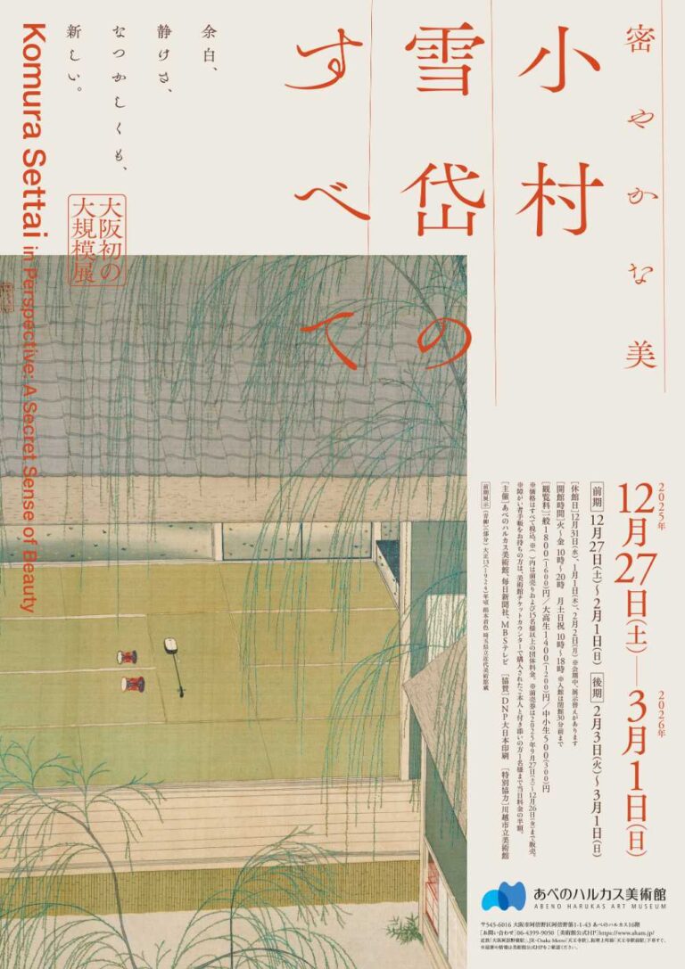 気品に満ちた繊細な美人画で知られる、小村雪岱(こむら せったい、1887~1940)。大正から昭和初期にかけて活躍した雪岱は、江戸情緒の香るレトロな作風で人気を博し、今でも根強いファンに愛されています。 そんな雪岱の人物像を捉え直す大規模な展覧会『密やかな美 小村雪岱のすべて』が、あべのハルカス美術館にて開幕します。会期は12月27日(土)~2026年3月1日(日)です。