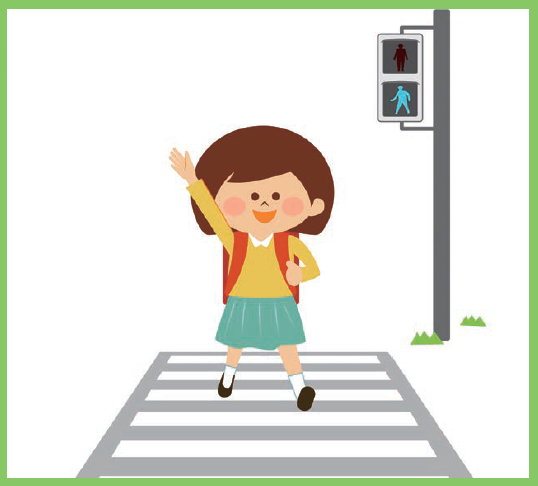 お子さんへのヒント:道路をわたるとき、注意しなければいけないのは何かな?